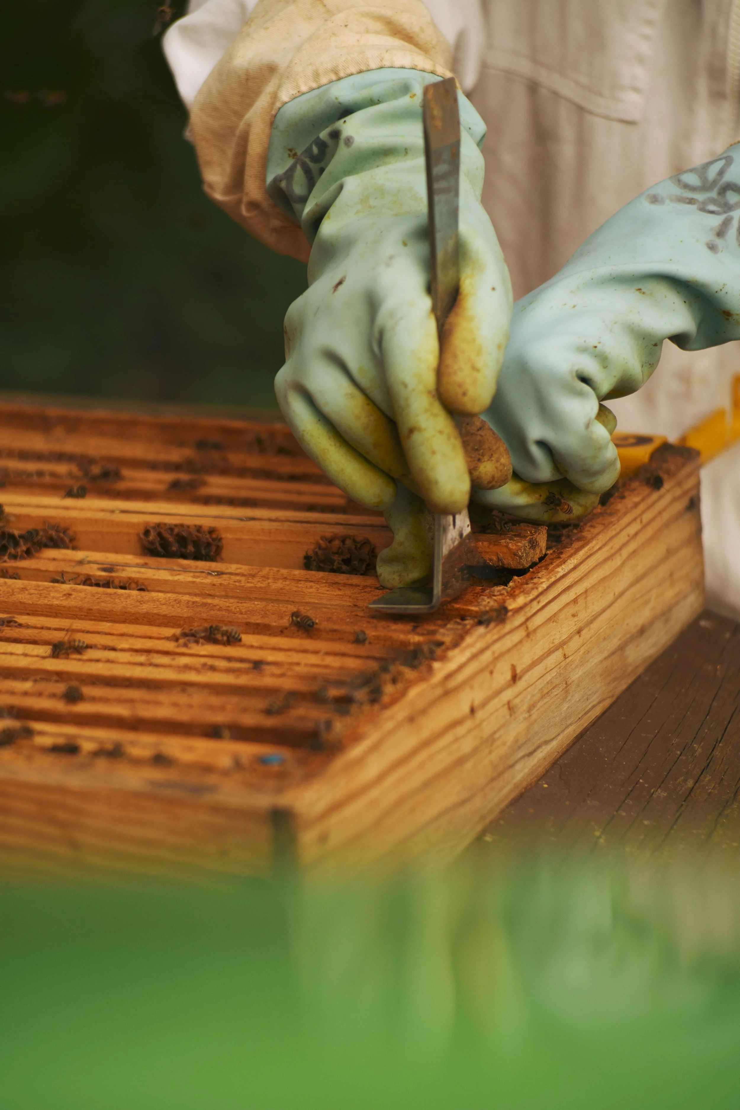 Installées Au cœur de l’Institut du Monde Arabe, les 5 ruches de l’École d’Apiculture Urbaine dirigée par Walid Loulidi font l’objet d’une attention particulière. En préparation de l’hivernage, le couple d’apiculteurs effectue les derniers contrôles des ruches avant la période hivernale.